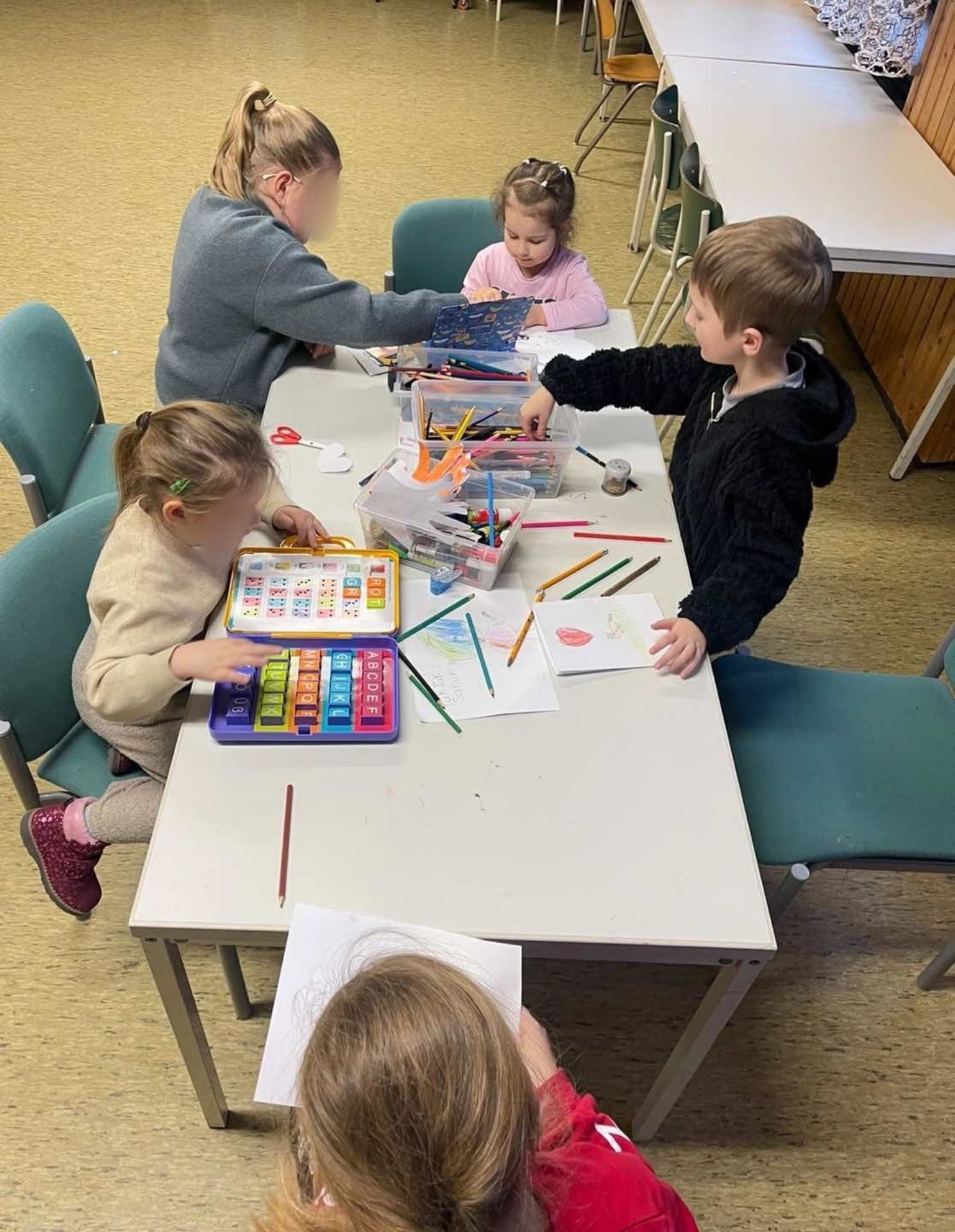 Strukturiertes Lernen: Eine professionelle Lehrkraft für Deutsch als Fremdsprache (DaF) unterrichtet die Kinder zweimal pro Woche in zwei altersgerechten Gruppen.